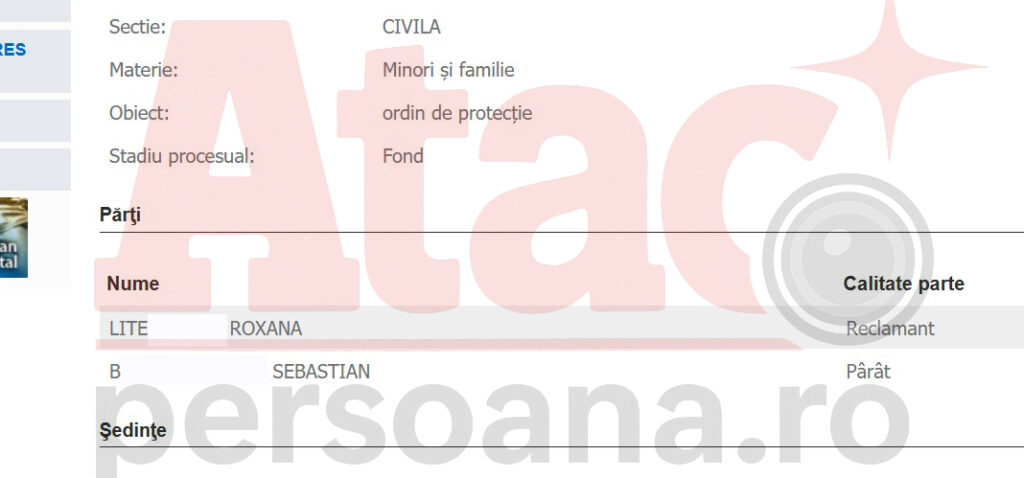 După ce Roxana Lite a cerut emiterea unui ordin de protecție, judecătorii s-au trezit în fața unei situații delicate: agresorul locuiește chiar lângă reclamantă, cei doi având acces în bloc prin aceeași scară! Așa că magistrații s-au văzut nevoiți să facă o precizare rar întâlnită în cazurile de emitere a unor ordine de protecție. Mai exact, au dispus ca, la intrarea în bloc, agresorul „să păstreze o distanţă de cel puţin doi metri faţă de reclamantă”.